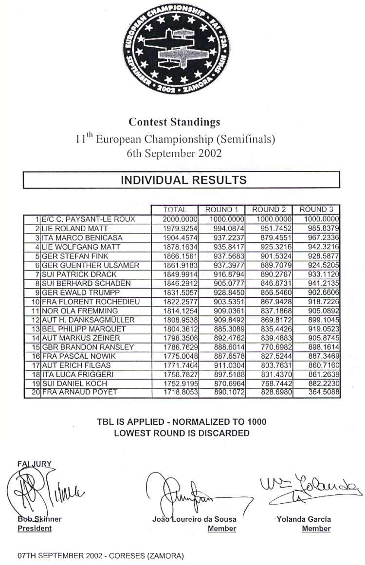| 2. Roland Matt (LIE) | 935 | 967 | 1000 | 993 | 1993 |