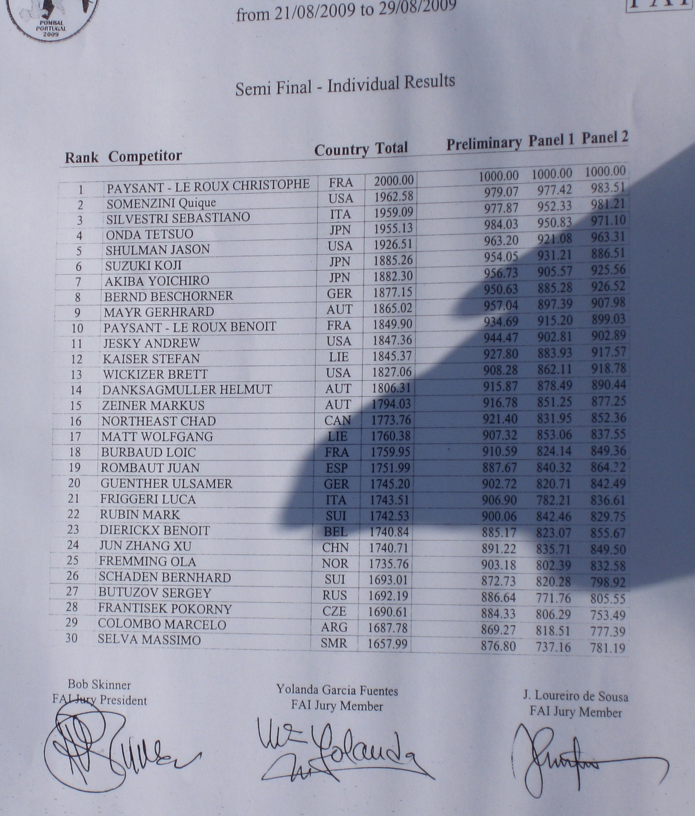 F3A MM-kilpailut 2009, Portugali – 28.8. – semifinaali